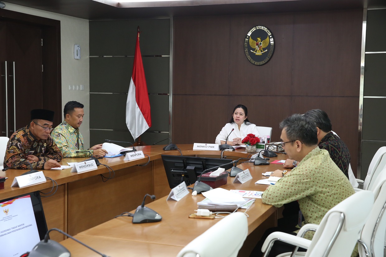 Jakarta (12/06)--– Menteri Koordinator Bidang Pembangunan Manusia dan Kebudayaan (Menko PMK) Puan Maharani, hari ini memimpin rapat koordinasi tingkat menteri dengan sejumlah menteri terkait sesuai arahan Presiden dalam Ratas tanggal 24 Januari 2017 untuk menyusun road map percepatan pembangunan sepakbola Indonesia dan membentuk tim. Hadir dalam rakor hari ini Menteri Pemuda dan Olahraga, Imam Nahrawi; dan Menteri Pendidikan dan Kebudayaan, Muhadjir Effendy. Sejumlah Rakornis dan Focus Group Discussions (FGD) telah dilangsungkan beberapa kali, dengan berbagai narasumber stakeholder persepakbolaan Indonesia untuk mengidentifikasi beberapa isu strategis dalam Percepatan Pembangunan Sepakbola Indonesia.