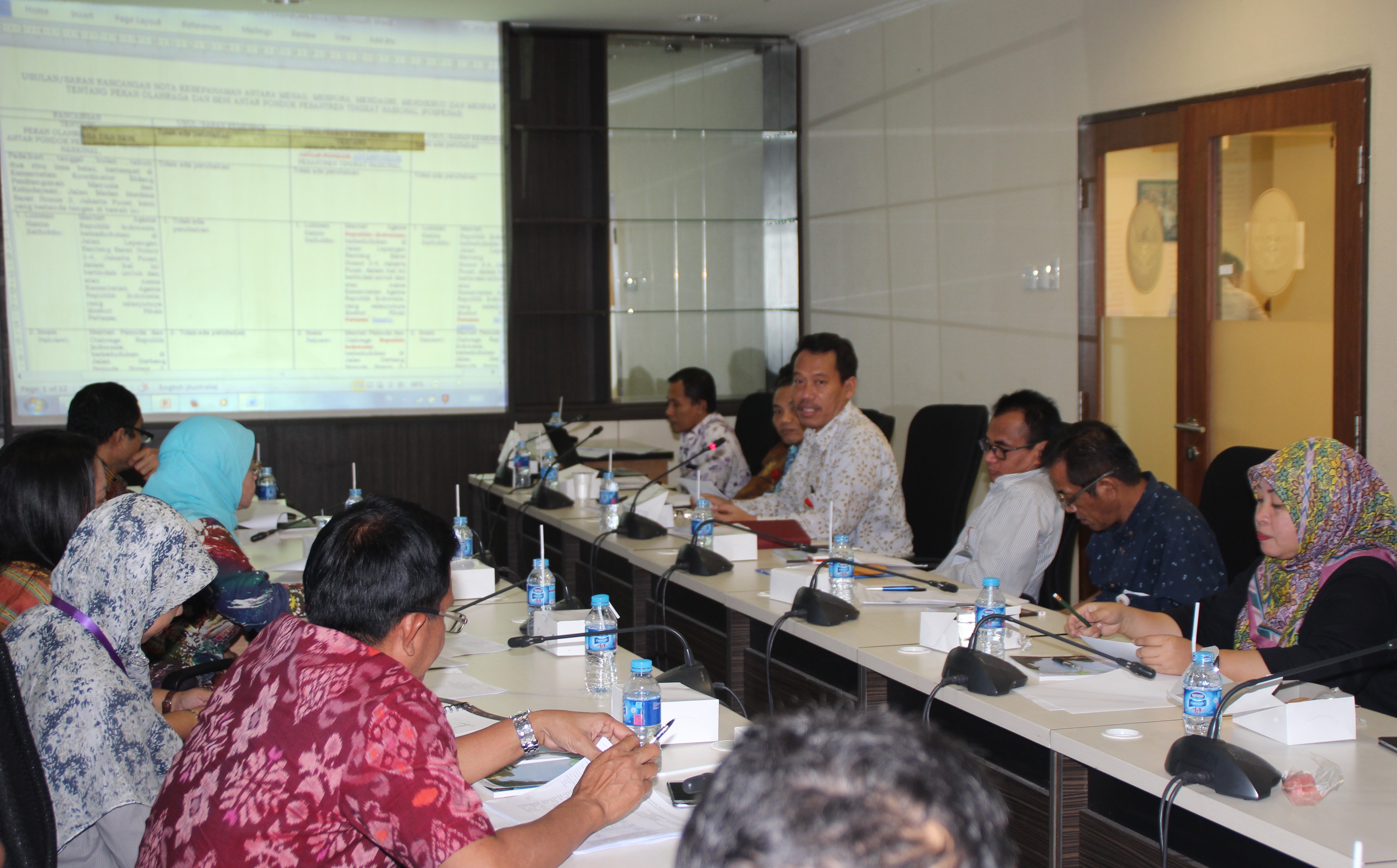 Jakarta, 2 Februari 2016 - Asisten Deputi Urusan Pembinaan Umat Beragama, Pendidikan Agama dan Keagamaan, Drs H. Sahlan MSi. Memimpin Rapat Finalisasi MoU Pospenas VII. Mengagendakan Pembahasan Finalisasi Nota Kesepahaman 5 (lima) Menteri di dalamnya, Yaitu: Menteri Agama, Menteri Pemuda dan Olahraga, Menteri Dalam Negeri, Menteri Pendidikan dan Kebudayaan dan Menteri Pariwisata, Tentang pelaksanaan Pekan Olahraga dan Seni Antar Pondok Pesantren Tingkat Nasional VII 2016 yang akan dilaksanakan di Provinsi Banten. (hms/Kdeputian IV)