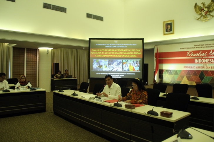 Jakarta (16/12) - Plt Deputi Menko PMK Bidang Koordinasi Penanggulangan Kemiskinan dan Perlindungan Sosial, TB Rachmat Sentika saat sedang memberikan arahan pada Rapat Koordinasi Evaluasi Pelaksanaan Progeram Penanggulangan Kemiskinan dan Perlindungan Sosial T.A 2015 dan Persiapan Program 2016 di Ruang Rapat Utama Kemenko PMK. Hadir dalam rakor tersebut K/L terkait seperti Kemensos, Bappenas, KemenPU & Pera, KemenPP & PA, dan Kemendagri. Rakor ini dilaksanakan dalam rangka penguatan Koordinasi, Sinkronisasi, dan Pengendalian (KSP) Penanggulangan Kemiskinan dan Perlindungan Sosial tahun 2016. (humas/dwi)