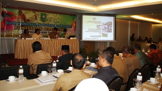 Riau (09/09)---Kemenko PMK kembalu menggelar Rapat Koordinasi, Monitoring dan Evaluasi Pelaksanaan Beras Raskin Se-Provinsi Riau Tahun 2015. Acara dibuka oleh Gubernur Riau yang diwakili oleh Kepala Biro Administrasi Perekonomian dan SDA Setda Prov Riau, H. Syafrial. Dalam sesi diskusi, acara ini diisi oleh nara sumber antara lain dari Kemenko PMK yaitu Asisten Deputi Kompensasi Sosial, G. Fajar Suryono; Koordinator Program RAskin Pokja Pengendalian Klaster I TNP2K, Imelda Leiwakabessy; dan Kepala Perum Bulog Divre Riau - Kepri, Faruq Octobri Qomary. Acara ini dihadiri pula oleh para SKPD se-provinsi Riau. (krs/humas)