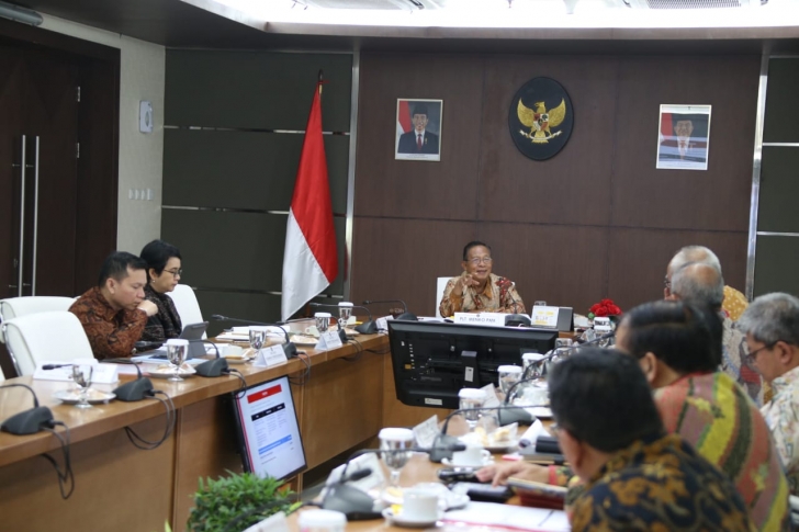 Jakarta (03/10)—- Setelah resmi ditunjuk sebagai Pelaksana Tugas Menko PMK, Menko Perkenomian, Darmin Nasution mengumpulkan para pejabat eselon I di lingkungan Kemenko PMK dalam forum rapat pimpinan di ruang rapat Menko PMK lt.8, gedung Kemenko PMK, Kamis pagi. Rapim dipandu langsung oleh Seskemenko PMK, YB Satya Sananugraha dan dihadiri oleh jajaran deputi dan staf ahli Kemenko PMK. “Saya minta laporan terkini dari pelaksanaan program kerja di bawah koordinasi Kemenko PMK. Saya harus pastikan kalau semuanya berjalan dengan baik sehingga nanti kita bisa tutup masa kerja kita di kabinet sekarang dengan sisa waktu yang tidak lama lagi ini dengan baik pula,” kata Darmin mengawali arahannya.