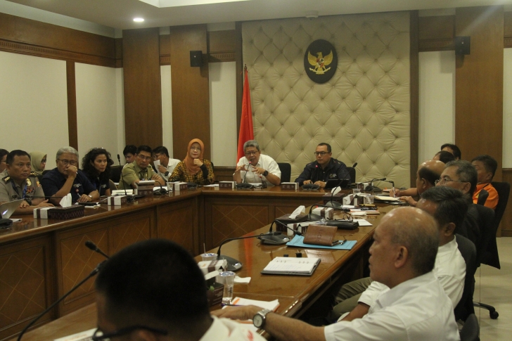 Jakarta (23/04)-- Deputi bidang Koordinasi Kebudayaan Kemenko PMK, I Nyoman Shuida, siang ini memimpin rapat koordinasi (rakor) terkait persiapan penyelenggaraan Asian Games XVIII Tahun 2018 dan Asian Para Games III Tahun 2018 di Ruang Rapat Menko lt. Dasar, Kemenko PMK, Jakarta. Rakor siang ini merupakan tindak lanjut dari rapat terbatas pada tanggal 18 April 2018 yang dipimpinan langsung oleh Presiden RI, Joko Widodo di Istana Bogor terkait publikasi terhadap kegiatan yang akan diselenggarakan di Jakarta dan Palembang pada bulan Agustus mendatang.