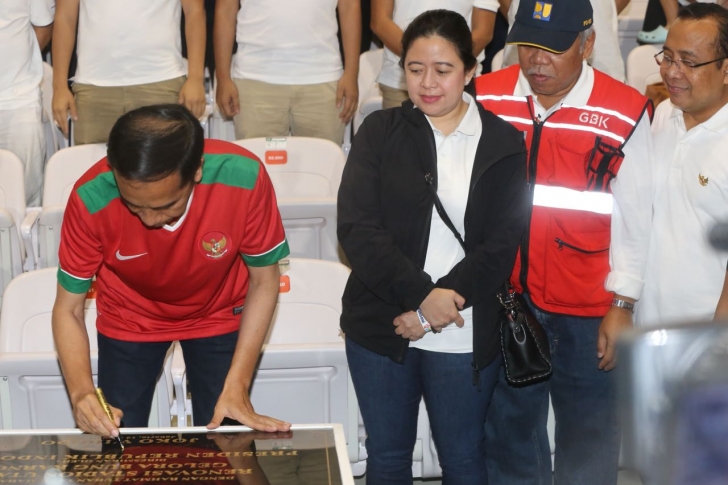 Jakarta (14/01)---Setelah direnovasi besar-besaran sejak pertengahan 2016 hingga Desember 2017, Komplek Olahraga Gelora Bung Karno (GBK) hari ini diresmikan penggunaannya oleh Presiden RI, Joko Widodo. Peresmian ditandai dengan penandatanganan prasasti oleh Presiden. “Dengan mengucap Bismillahirrohmanirrohim, renovasi besar Gelora Bung Karno Saya resmikan dan siap untuk digunakan,” kata Presiden sebelum menandatangani prasasti pada Minggu petang.