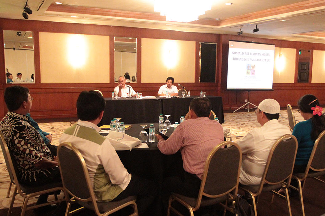 Jakarta(25/04) – Deputi Bidang Koordinasi Penanggulangan Kemiskinan dan Perlindungan Sosial Kementerian Koordinator Pembangunan Manusia dan Kebudayaan (Kemenko PMK), Tb. A. Choesni membuka kegiatan sosialisasi Badan Penyelenggara Jaminan Sosial (BPJS) Ketenagakerjaan, di Hotel Millenium, Jakarta, pada Senin (25/04).
