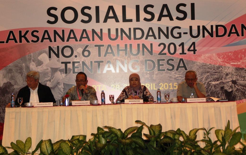 Jakarta, 29 April - Asisten Deputi Urusan Pemberdayaan Masyarakat Kemenko PMK, Pamuji Lestari memimpin dialog terkait Sosialisasi UU Nomor 4 Tahun 2014 Tentang Desa di Hotel Red Top, Jakarta. Dialog menghadirkan Suprayoga Hadi, MSP, Plt Dirjen Pembangunan dan Pemberdayaan Masyarakat Desa Kementerian Desa, PDT dan Transmigrasi, Leroy Samy Uguy, Asisten Deputi Urusan Pengembangan Komoditas Unggulan, Kementerian Desa, PDT dan Transmigrasi serta F.Gatot Yanrianto, Direktur Kelembagaan dan Pelatihan Masyarakat Kementerian Dalam Negeri. Sosialisasi UU Nomor 4 Tahun 2014 Tentang Desa berlangsung dari 28 - 30 April 2015. (AK)