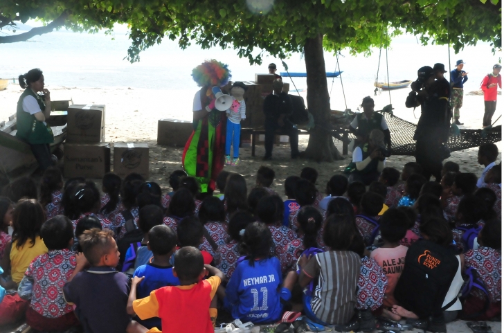 Anak-anak tampak sumringah dan tersenyum menyambut saat Tim Bhakti PMK Tim Ekspedsi Bhakti PMK memulai kegiatannya. Para anggota Tim Ekspedisi Bhakti PMK langsung menjalankan program yang direncanakan. Tim Dari Baznas misalnya, langsung dikerumuni anak-anak. Riyan, salah satu anggota tim Baznas memberikan dongeng bagi anak-anak. Usai menikmati dongeng, tim Baznas langsung membagikan hadiah tas sekolah.