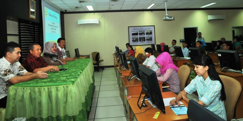 Jakarta, 2 Oktober - Kementerian Koordinator Bidang Kesejahteraan Rakyat (Kemenko Kesra) menyelenggarakan ujian TKD untuk pelamar CPNS 2014 sebanyak 232 orang melalui Computer Assisted Test (CAT), Kamis (2/10/2014) pagi di Badan Kepegawaian Negara (BKN), Jakarta. Sebelum ujian dimulai, Kepala BKN Drs. Eko Sutrisno, M.Si., (kedua kiri) memberikan sambutan dan arahan. Dalam kesempatan tersebut Kepala BKN didampingi Kepala Biro Umum Kemenko Kesra Dra. Indah Suwarni, M.Si., (kedua kanan), Kepala Bagian Kepegawaian Kemenko Kesra Edy Wiyanto, S.Sos. (kanan).(Foto:Gs).