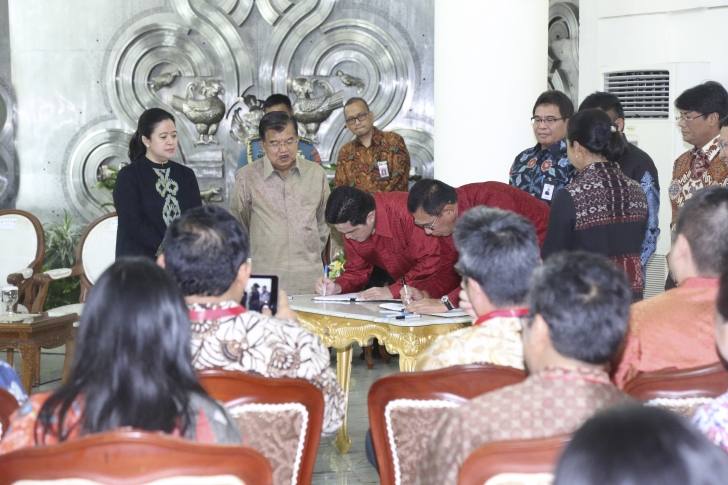 Jakarta (25/10) --- Enam perusahaan telah berpartisipasi dalam kategori sponsor prestige untuk Asian Games. Penandatangan kerjasama antara enam perusahaan itu dengan INASGOC disaksikan Wapres Jusuf Kalla dan Menko PMK Puan Maharani.