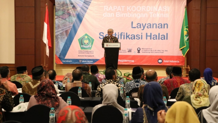 Jakarta (8/10) -- Deputi Bidang Koordinasi Pendidikan dan Agama Kemenko PMK, Prof. Agus Sartono memberikan sambutan pada rapat Koordinasi Persiapan Layanan Sertifikasi Halal Daerah. Rapat dihadiri juga Oleh Menteri Agama Lukman Hakim Saifuddin dan selenggerakan di Hotel Millenium, Jakarta Selasa (8/10).