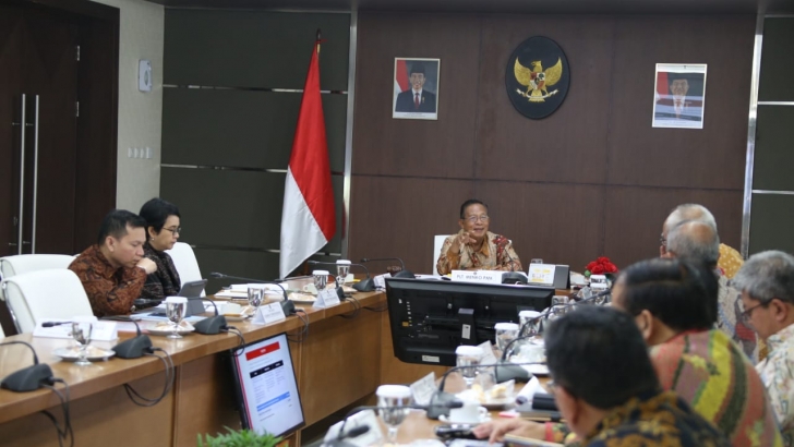 Jakarta (7/10) -- Plt Menko PMK, Darmin Nasution melakukan rapat internal bersama Pejabat Eselon I Kemenko PMK membahas perkembangan program bantuan sosial dan juga rencana penyelenggaraan Pekan Olahraga Nasional (PON) dan Pekan Paralimpik Nasional (Papernas) 2020.