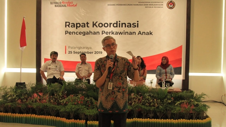 Palangkaraya (25/9) -- Mewakili Deputi Koordinasi Perlindungan Perempuan dan Anak Kemenko PMK, Asisten Deputi Pemenuhan Hak dan Perlindungan Anak  Kemenko PMK, Marwan Syaukani memberikan arahan pada Rapat Koordinasi Pencegahan Perkawinan Anak. Rapat diselenggarakan di Hotel Bahalap, Palangkaraya, Provinsi Kalimantan Tengah (Kalteng), Rabu (24/9).